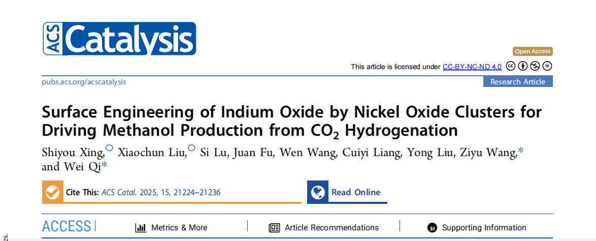 近日,廣州能源所在國際催化領(lǐng)域期刊ACS Catalysis上發(fā)表題為Surface Engineering of Indium Oxide by Nickel Oxide Clusters for Driving Methanol Production from CO2 Hydrogenation的學(xué)術(shù)論文。