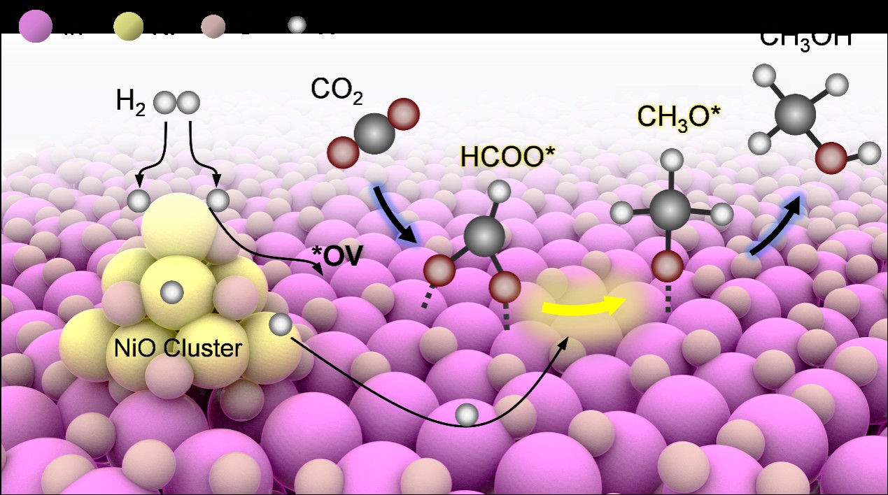 截至目前,科研人員已報道了多種類型的甲醇催化劑,涵蓋Cu/ZnO基催化劑、二元氧化物以及二硫化鉬基催化劑等。其中,氧化銦因其表面易還原形成活性氧空位(OV)位點的特性,被證實是新一代具有潛力的甲醇催化劑?,F(xiàn)有研究表明,在催化材料表面負載Pt、Ni等具有較強活化氫能力的金屬,能夠顯著增強甲醇的合成速率。然而,目前甲醇的制備效率仍有待進一步提高。