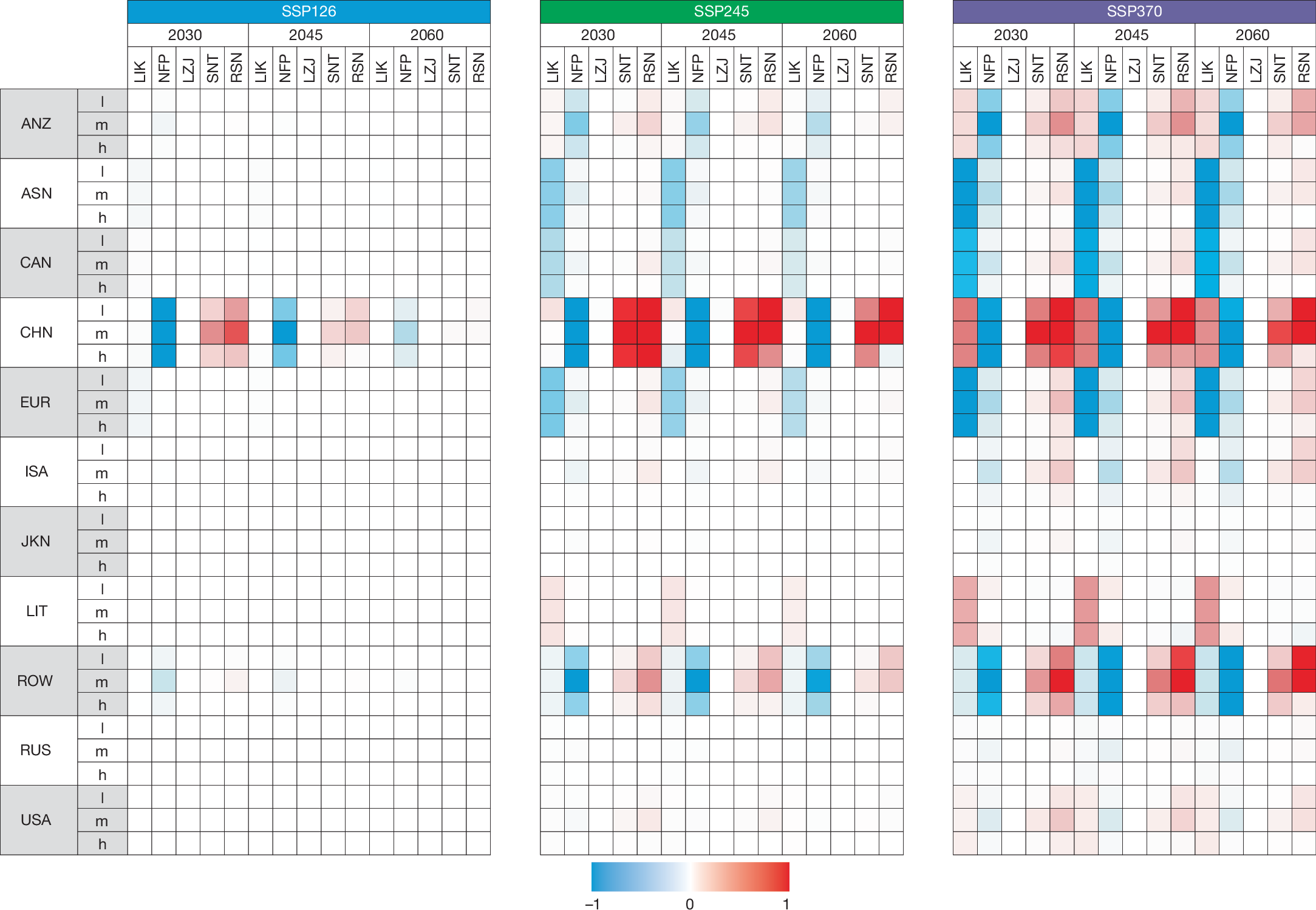 不同循環(huán)利用情景下的區(qū)域和部門排放變化