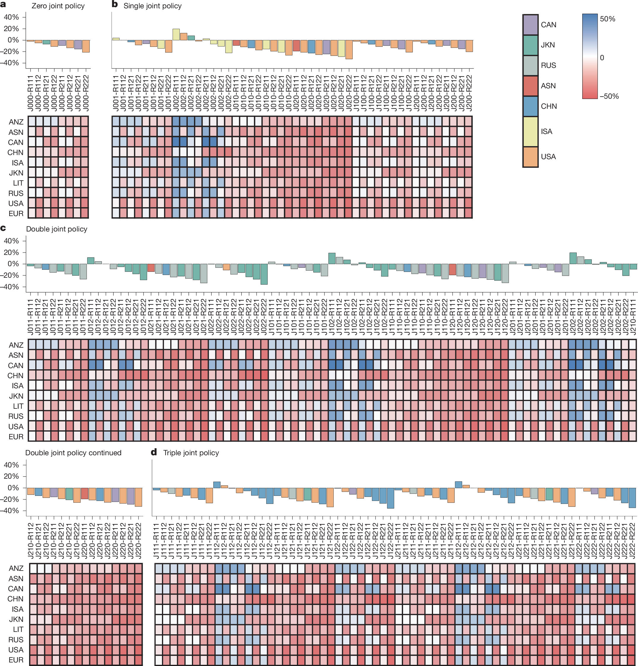 鑒于此,該研究開發(fā)的LCCGE模型首次將生命周期評價的微觀技術(shù)細節(jié)與可計算一般均衡模型的宏觀經(jīng)濟動態(tài)相結(jié)合,從而能夠精準模擬不同政策、技術(shù)及貿(mào)易策略對全球供應(yīng)鏈經(jīng)濟效益與環(huán)境足跡的連鎖效應(yīng)?!皟r值-排放悖論”表明附加值較低的采礦環(huán)節(jié),以18.78%的經(jīng)濟價值貢獻,產(chǎn)生了38.52%的碳排放;附加值較高的正極材料生產(chǎn)環(huán)節(jié),以34.82%的排放,創(chuàng)造了42.56%的經(jīng)濟價值。這一結(jié)構(gòu)性失衡表明,產(chǎn)業(yè)鏈脫碳的關(guān)鍵在于制造環(huán)節(jié)的重點治理,并迫切需要發(fā)掘循環(huán)經(jīng)濟的減排潛力。通過對上千種復(fù)雜情景的系統(tǒng)性模擬研究,證實了單一的減排政策的效果相對有限且易引發(fā)“負擔(dān)轉(zhuǎn)移”等負面效應(yīng);并提出了一種實現(xiàn)產(chǎn)業(yè)深度脫碳的最優(yōu)路徑,即“全球協(xié)同+區(qū)域定制”的綜合性戰(zhàn)略框架。該框架建議各國在技術(shù)、貿(mào)易和環(huán)境政策上展開跨區(qū)域合作,同時根據(jù)自身在供應(yīng)鏈中的角色量身定制各自的循環(huán)經(jīng)濟策略。研究提出的最優(yōu)策略框架,為有效應(yīng)對上述挑戰(zhàn)提供了協(xié)同治理機制。在該策略下,預(yù)計到2060年全球鋰電池供應(yīng)鏈的平均排放強度可降低35.87%,其中中國的減排潛力可達42.35%,美國、歐盟的減排潛力也分別可達39.14%、37.28%。