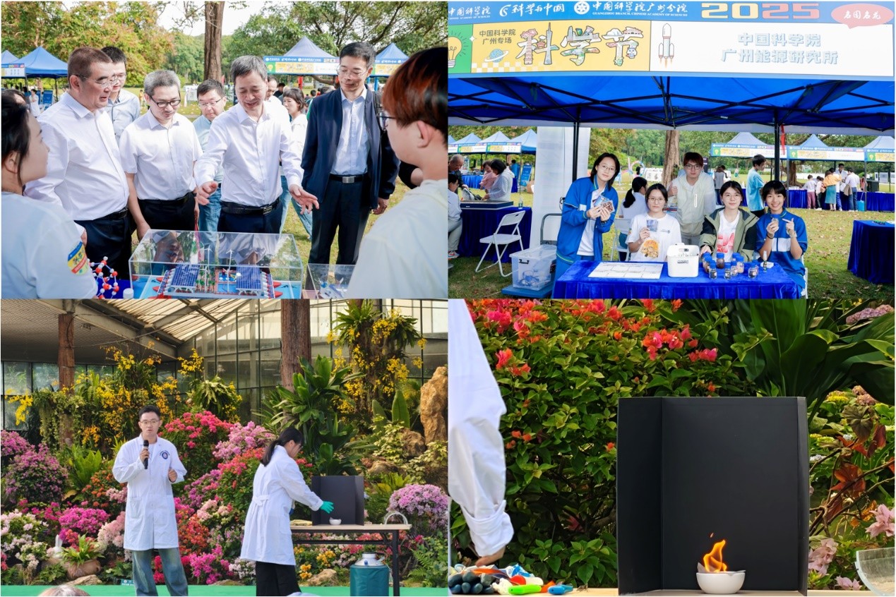 11月1日,在黨委副書記、紀委書記侯紅明的帶領(lǐng)下,廣州能源所參加了在華南國家植物園舉辦的中國科學(xué)院第八屆科學(xué)節(jié)2025廣州專場暨中國科學(xué)院植物園第十一屆名園名花展活動。志愿者們通過展示實物和模型,向公眾介紹了可以生成固液氣三種形態(tài)燃料的生物質(zhì)原材料、將太陽能轉(zhuǎn)化成電能的不同類型電池板、波浪能和太陽能發(fā)電的裝置等新能源材料和器件。在主舞臺上,廣州能源所志愿者帶來了在實驗室內(nèi)人工合成的可燃冰,讓觀眾近距離觀察可燃冰的外觀結(jié)構(gòu),并演示了精彩的可燃冰點燃實驗,燃燒的火焰既承載著科技探索的力量,也讓大家對“藍色能源”多了份了解。